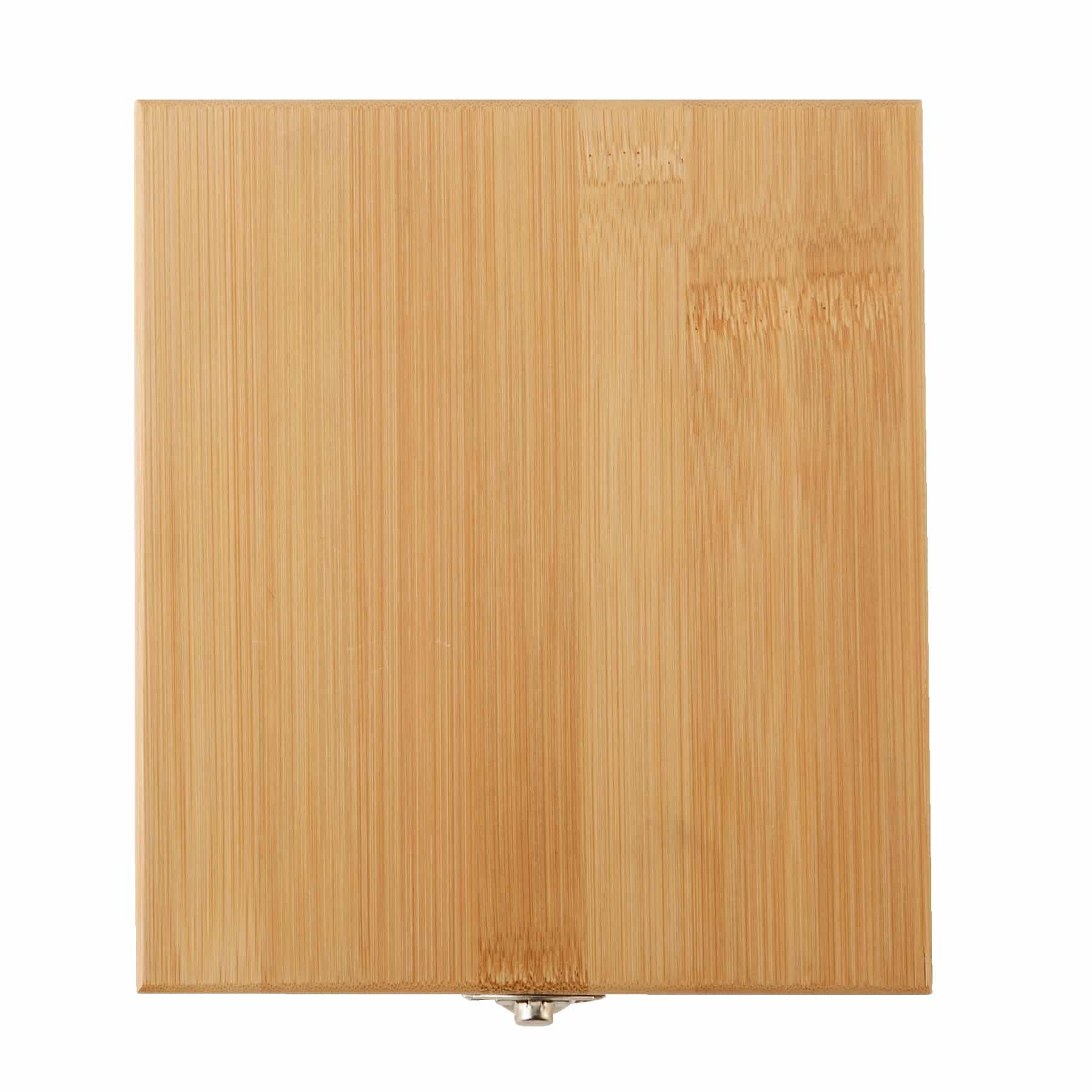 Gift set includes: wine opener, wine stopper, wine pourer and drip collar. Easy to store tools in high end bamboo box with clasp. It’s naturally heat and bacteria resistant. Eco friendly – 100% renewable resource and meets FDA requirements. Best to hand wash with warm water and mild soap/detergent. Due to natural variations in the grain, laser engraved imprints may have slightly different shades. A tone on tone imprint is common with lasered bamboo. 6 5/8″ H x 5 7/8″ W x 1 7/8″ D