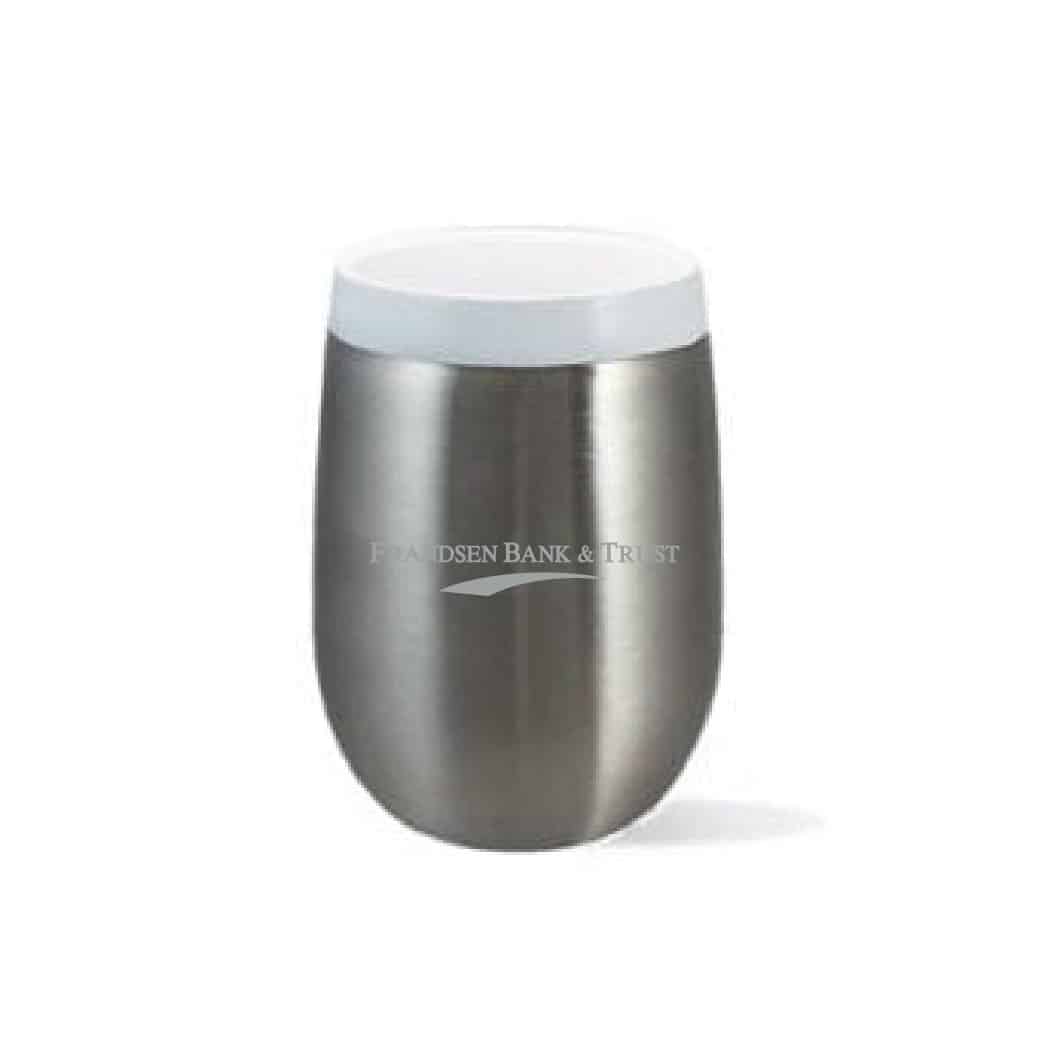 Enjoy a more natural and full wine flavor with our patent pending CeramiSteelâ„¢ wine tumbler. This tumbler has a 9 Oz. capacity, high performance double wall vacuum insulation and keeps hot liquids hot up to 5 hours and cold liquids up to 24 hours. It also features a durable stainless steel outer construction, and a ceramic inner coating that eliminates metallic taste and protects stainless from staining. CLOSEOUT: While Supplies Last. Complies with FDA, Prop 65. 4.5″ H x 3.25″ Diameter