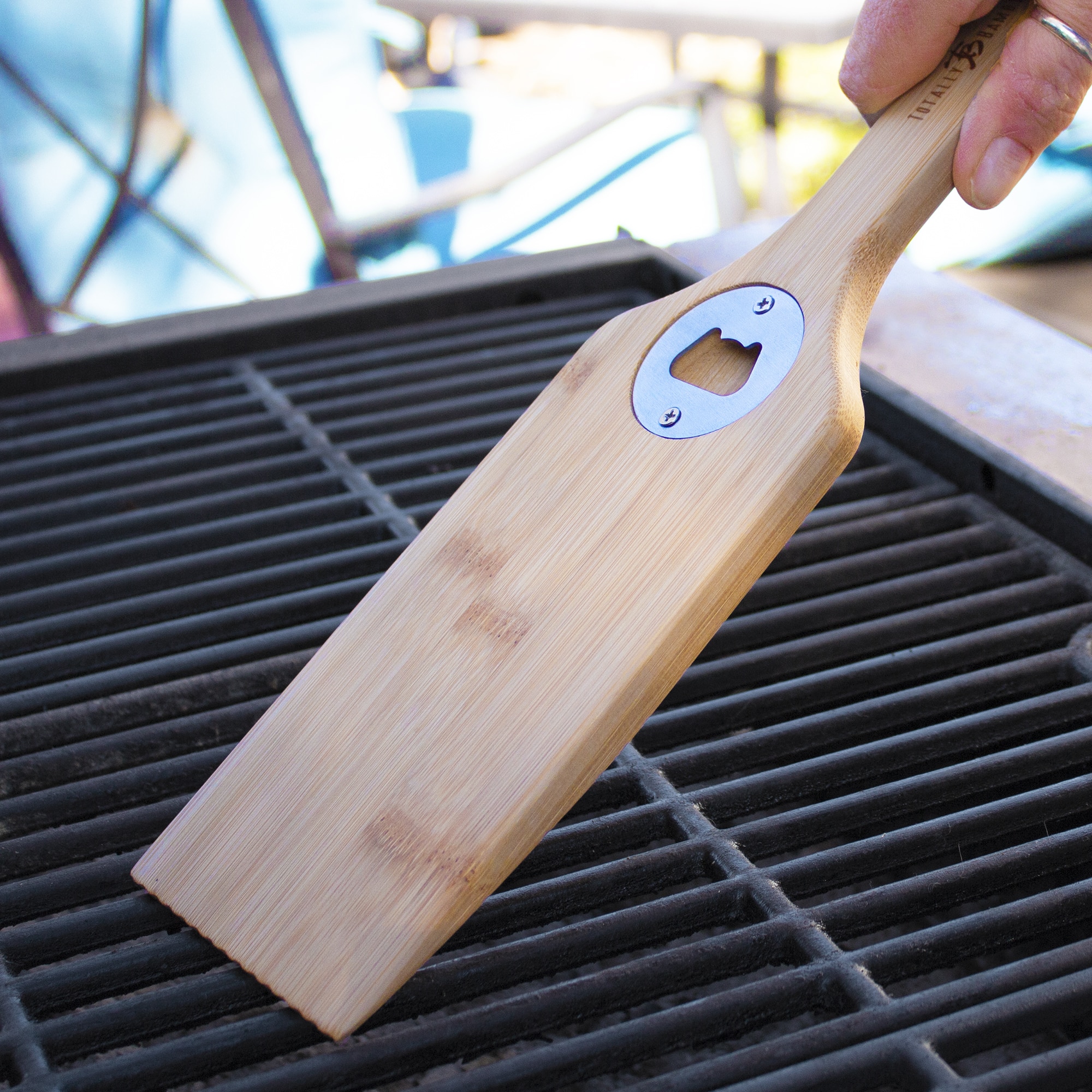 Bamboo BBQ Grill Scraper with Bottle Opener is the perfect tool for indoor/outdoor barbeque use! Get ready for the Fourth of July with worry free grill cleanup and handy bottle opener all in one. Complies with Prop 65. 15 1/2″ H x 3 3/4″ W x 1/2″ Thick