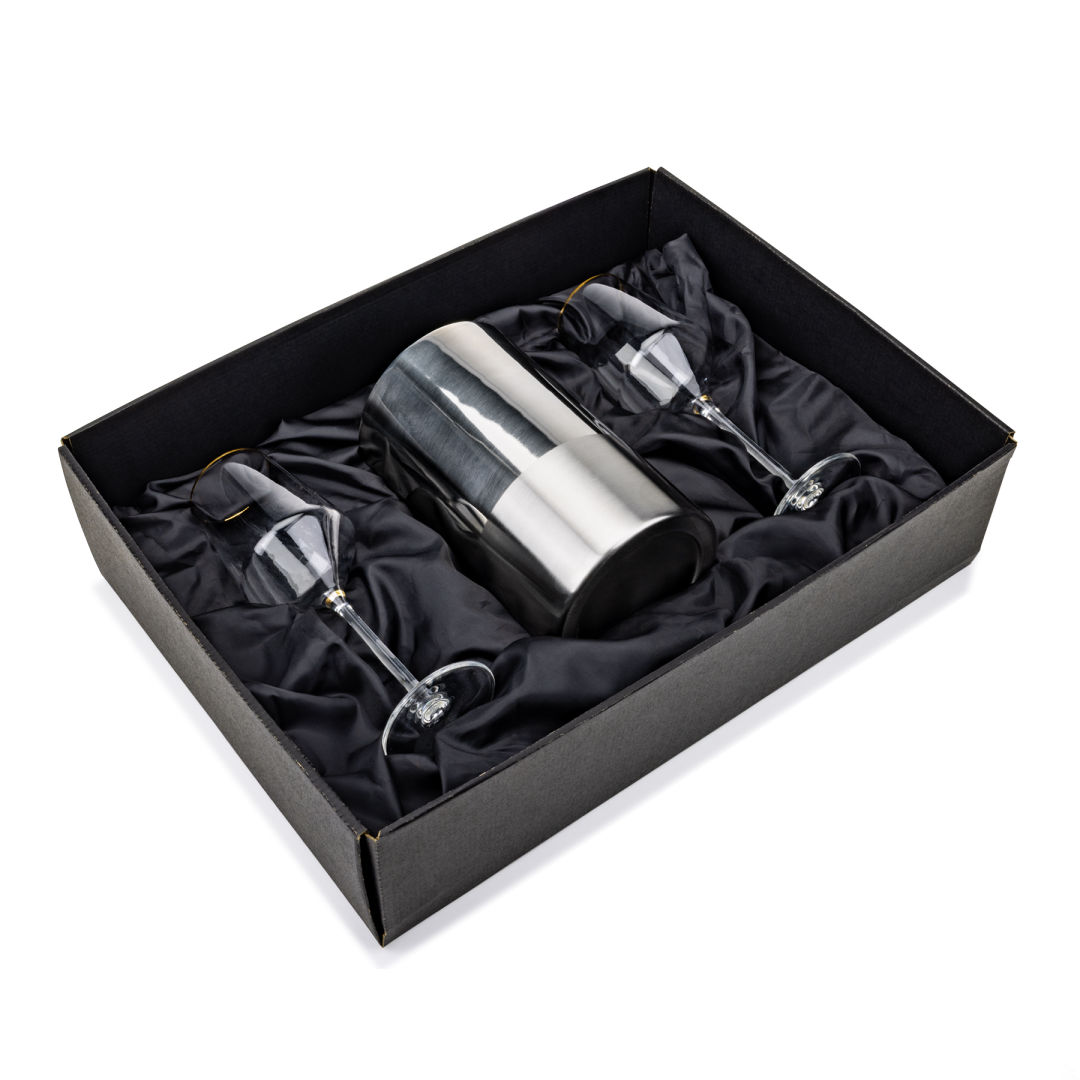 Elevate any pour with the Catania Wine Cooler & Wine Set, featuring a sleek, polished stainless steel cooler that keeps your favorite bottle perfectly chilled alongside elegant wine glasses for a refined table moment. The cooler’s modern silhouette delivers standout style from countertop to patio, while the crystal-clear glasses balance comfort and sophistication for reds, whites, or rosés. Available with a variety of stemmed and stemless wine glass options, this set makes an effortlessly versatile gift—or a timeless upgrade to your own barware.