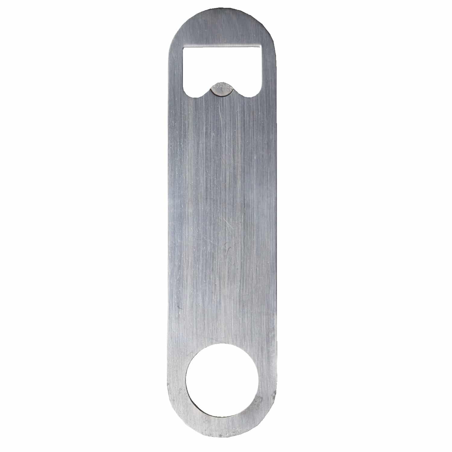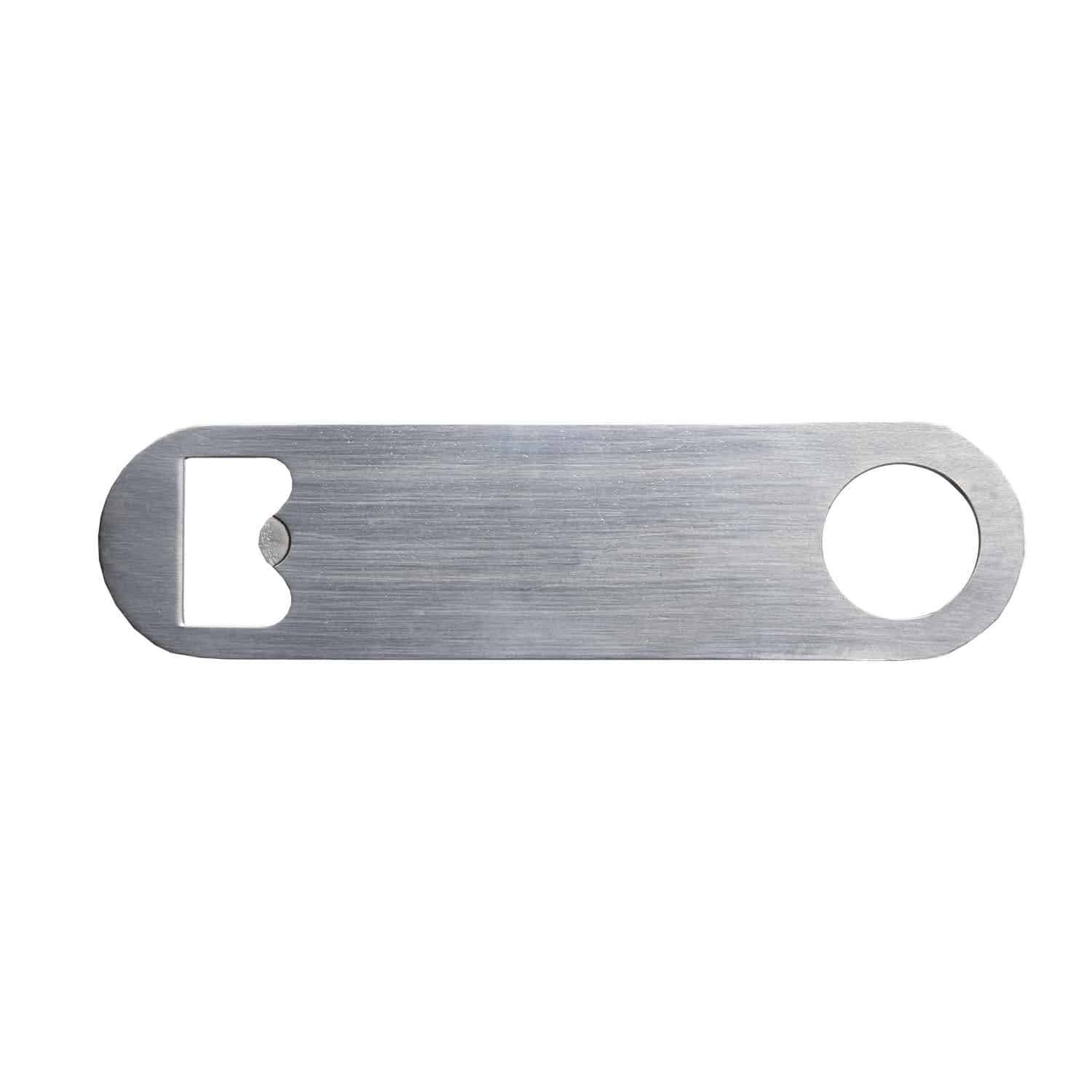 Stainless steel construction that easily opens metal bottle caps. Hole on end allows for hanging or attaching to extending reels. Complies with Prop 65. 1 1/4″ H x 4 3/4″ W x 1/8″ D