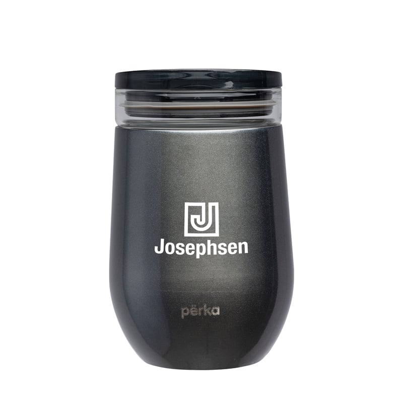 The Perka Taylor 12 oz. double wall stainless steel vacuum sealed wine cup is perfect for any wine lover to enjoy their favorite wine. Not just for wine, its removable 12 oz. borosilicate glass inner cup will keep the purity of taste for any drink, hot or cold. This cup is easy to use, convenient and has an elegant glossy metallic finish making it the perfect gift. For coffee lovers, this cup will keep your hot coffee hot for 8 hours and your iced coffee cold for 12 hours and is compatible with most single serve coffee machines. The Taylor mug features a translucent, push-in sipper lid that fits the steel tumbler with or without the glass inner cup and is FDA compliant and BPA Free. A portion of all proceeds is donated to Shelter to Soldier, a non-profit organization that rescues dogs to train as service animals for veterans in need. Complies with Prop 65. 3 1/2″ W x 5 3/8″ H x 3 5/8″ D