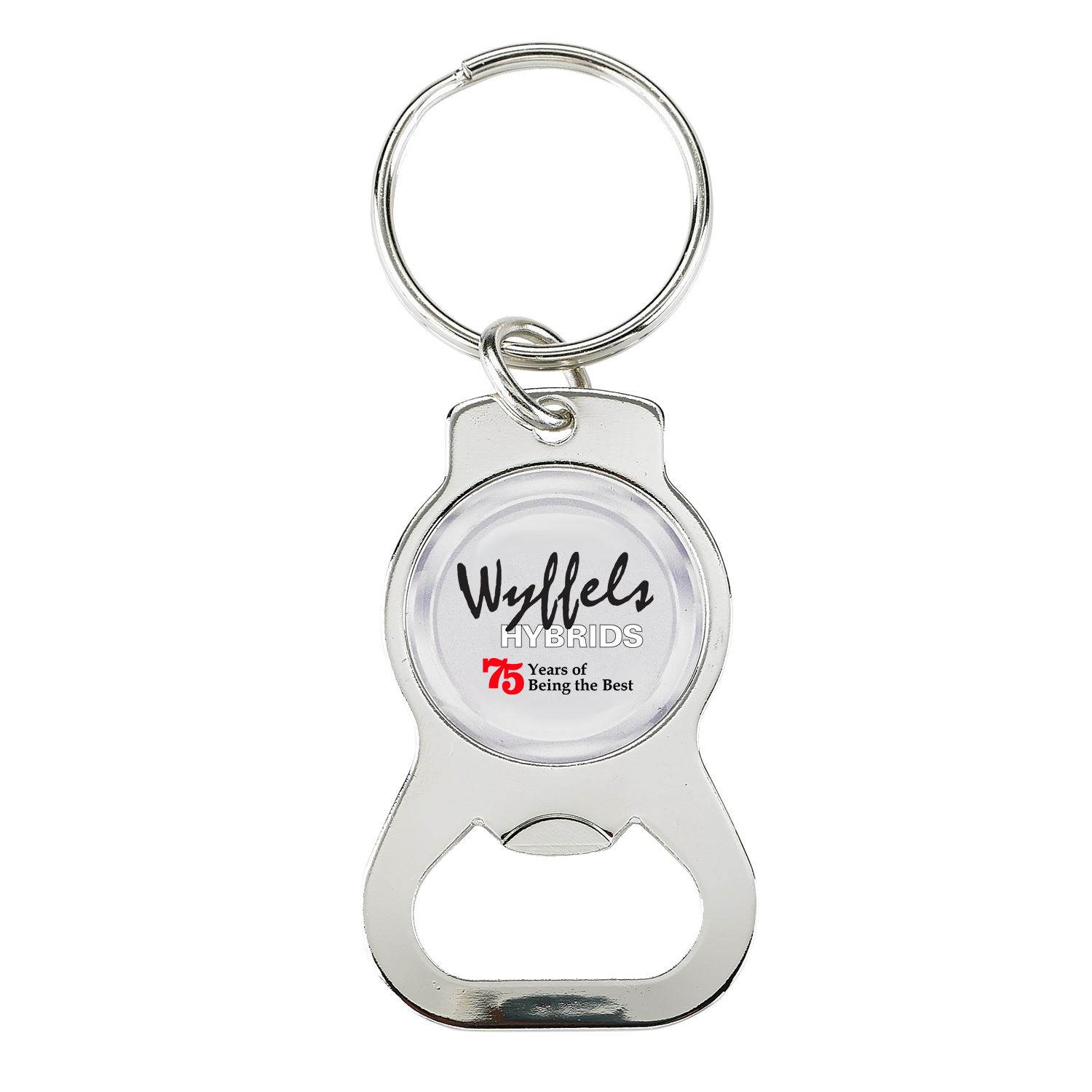 Give out this USA-Made Ultimate Bottle Opener Key Tag. This steel opener measures at 2 3/8″ x 1 1/2″ and features a split ring on which to add keys and other tags. This item comes in silver or black and can feature your company name or logo in a full color, urethane dome print. This perfect tradeshow or convention giveaway will get new clients interested in more of what you have to offer.
