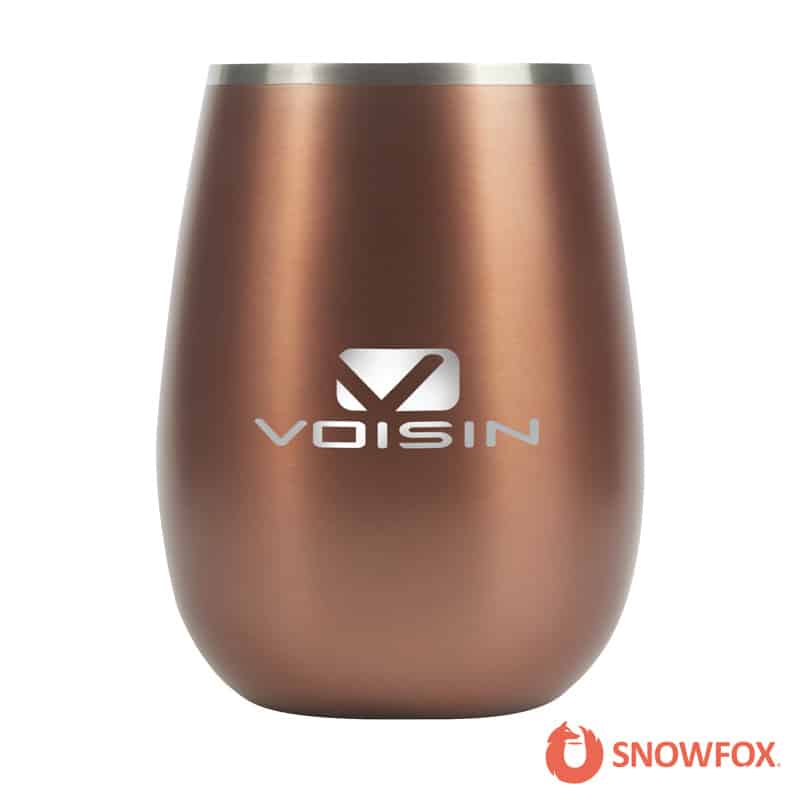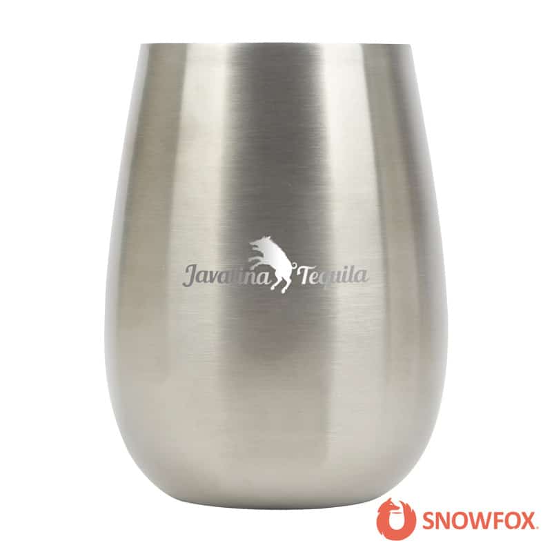 Elegance meets durability with the Snowfox Vacuum Insulated Pinot Noir Wine Glass! Unlike traditional glassware, the Snowfox Pinot Noir wine glass is made of 18/8 stainless steel and the double wall vacuum insulated construction keeps your wine at the perfect temperature for longer and also keeps hands from warming your wine, ensuring every sip is as enjoyable as the first. The wine glass features a patent pending 1mm lip rim as thin as fine crystal without the risk of chipping or breaking. It. Complies with Prop 65. 3 1/2″ W x 4 5/8″ H x 3 1/2″ D