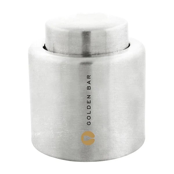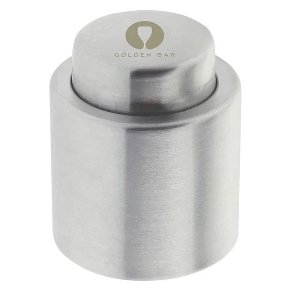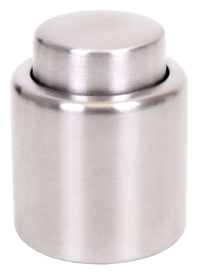 Preserve your wine’s flavor and freshness with this brushed stainless steel vacuum stopper. Designed for simplicity and style, it self-locks when gently pressed into the bottle, creating an airtight seal with its silicone insert. To release, just press the push-button top. Sleek, durable, and easy to use—this stopper is a must-have for any wine lover. Complies with Prop 65. 1 3/4″ Diameter